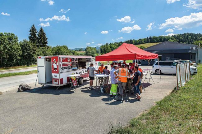 Globalp Contractant Général tenait à remercier le personnel de nos équipes partenaires Giraudon Travaux Publics et Maçonnerie Pinto , qui travaillent actuellement malgré les fortes chaleurs sur le projet que nous menons pour notre client SESSERT, en leur proposant une pause-déjeuner pour le moins… inhabituelle. Aussi, avons-nous fait appel au food-truck local de La baraq’à…