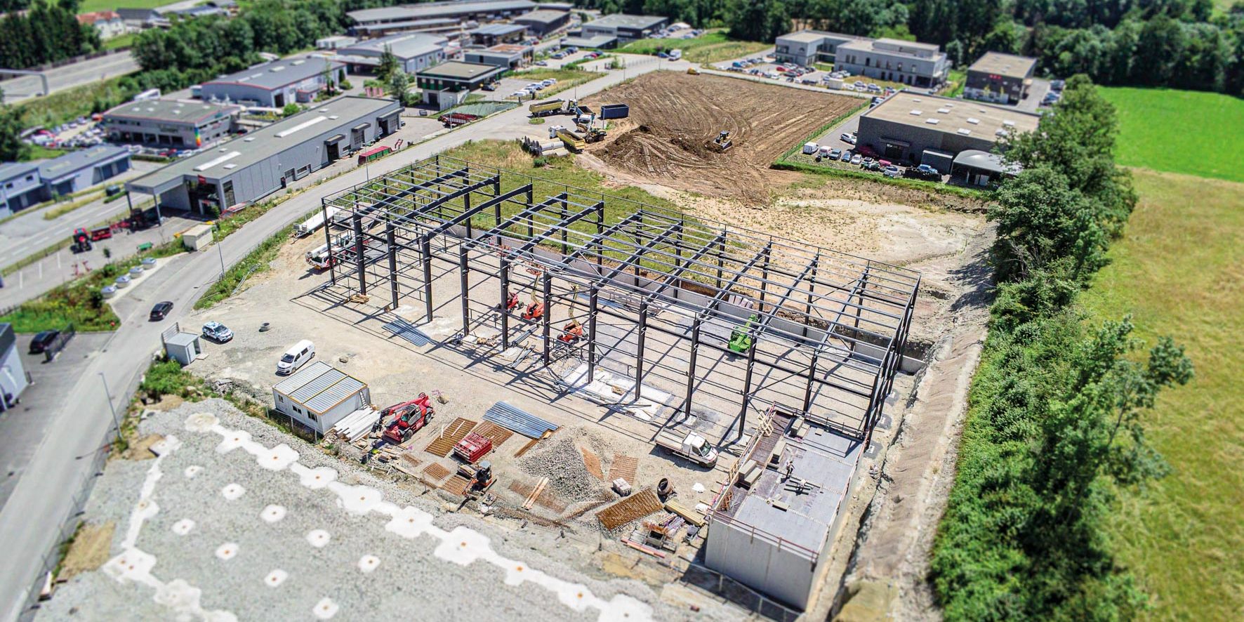 Sur le chantier que Globalp Contractant Général mène à Allonzier-la-Caille pour le compte de la 𝘚𝘊𝘐 𝘓𝘦𝘴 𝘛𝘦𝘳𝘳𝘦𝘴, le nouveau bâtiment de notre partenaire LP Charpente prend forme avec le montage de la charpente métallique opéré par notre partenaire 𝗖𝗠𝗗. Désormais, on peut se rendre compte du volume de ce futur atelier de production de LP Charpente qui s’étend sur plus de 2 000 m2 !